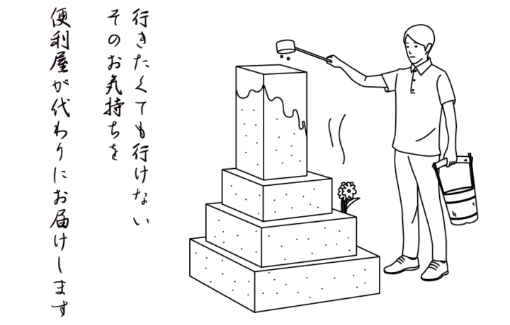 遠方にお住まいの方、忙しい方に代わり、お墓参り、徹底清掃、献花、合掌を代行いたします。全国対応可能。作業前後の写真・動画報告付きで、安心してお任せいただけます。