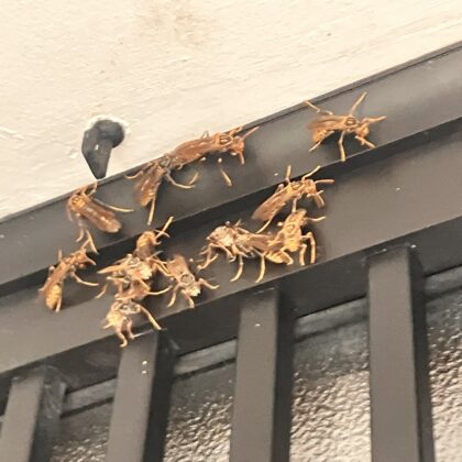 木や建物などに一時的に蜂の群れが集まることがありますが多くの場合はしばらくすると別の場所へ移動します。